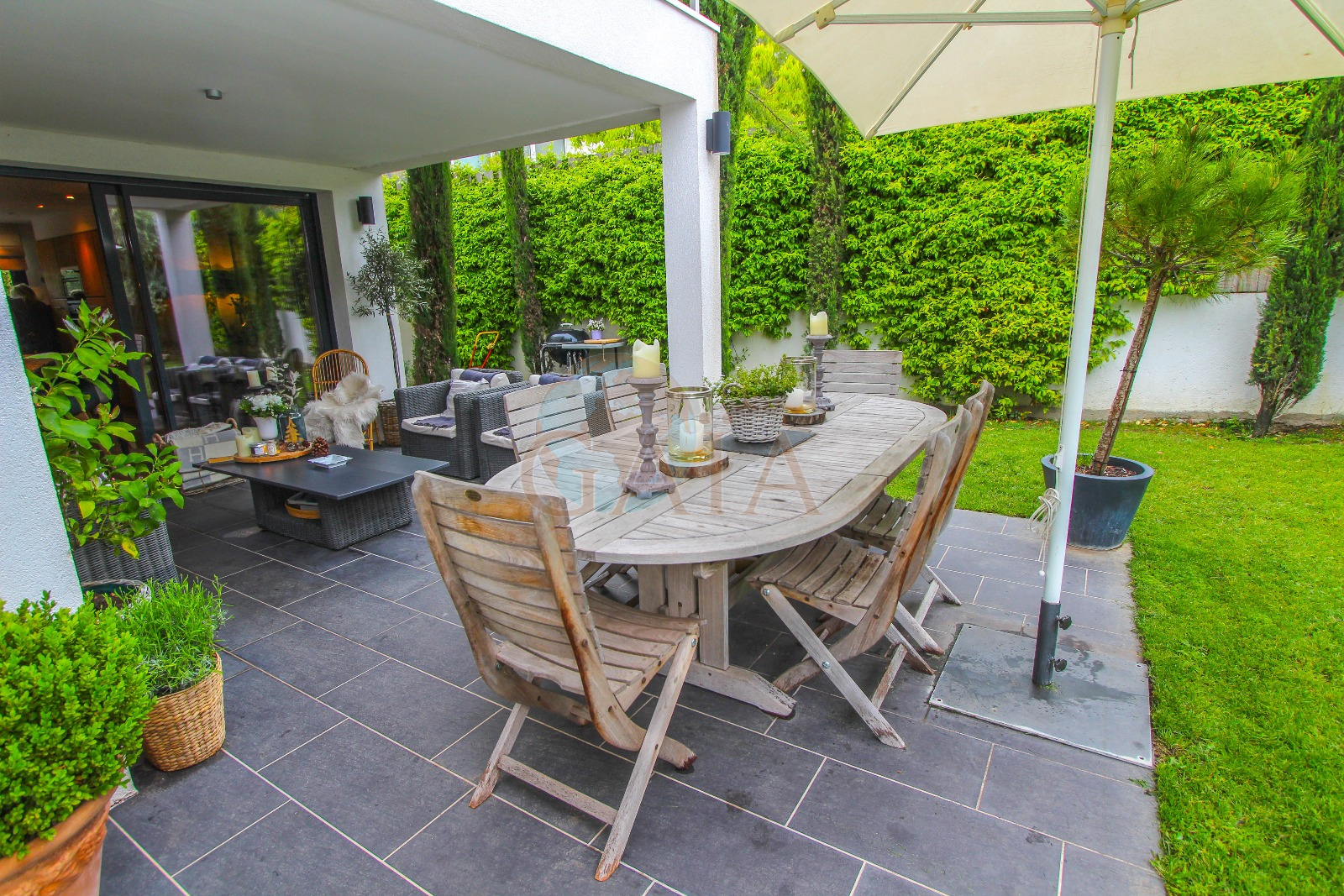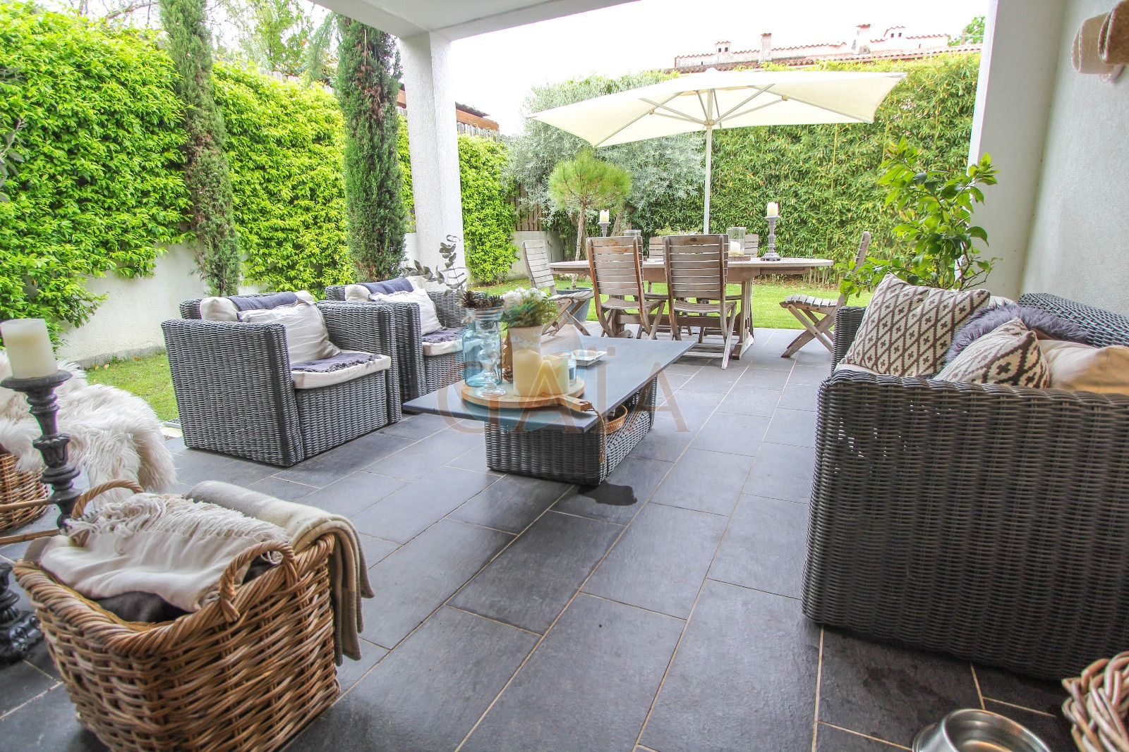 Cannes (06400)Cannes secteur résidentiel de Montfleury au calme et sans vis-à-vis à moins de 10 minutes des commerces, des écoles publiques et privées- Sainte Marie et espace piscine et Tennis Montfleury à 5 minutes à pied- des plages et de la Croisette, splendide maison de ville de 150 m2 habitables IDEALE FAMILLE sur jardin clos et joliment paysagé, entièrement rénovée en 2013 avec des prestations raffinées, espace salon/salle à manger/cuisine de 50 m2 largement ouvert sur espace jardin et beaux espaces terrasses plein SUD, 5 chambres dont une de maître avec dressing, salle de bain et douche/toilettes, tropézienne et jacuzzi, 2 chambres du plain pied avec salle d'eau/toilettes. garage de 30 m2 et parking intérieur de 4/5 voitures. Possibilité petite piscine.