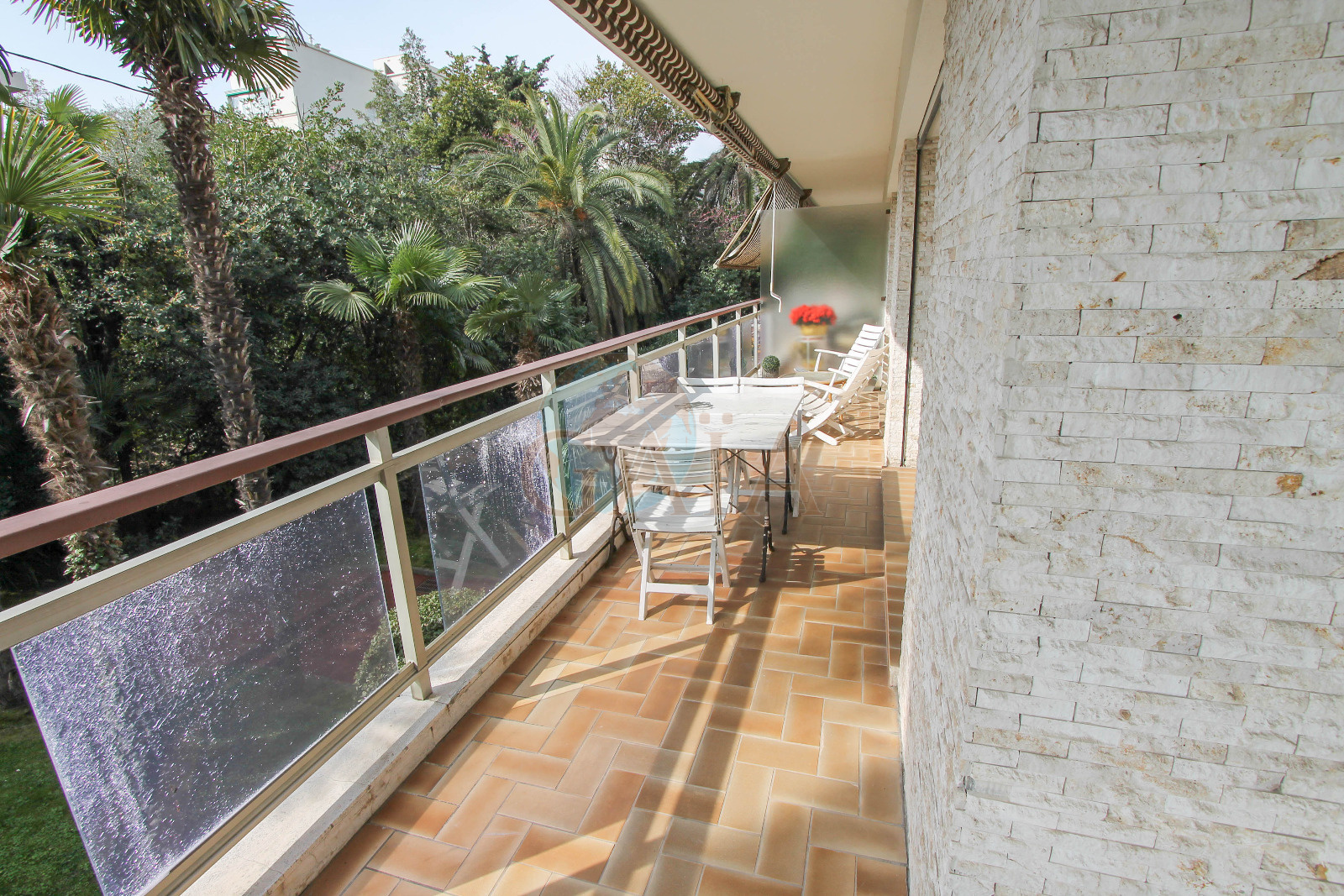 Cannes (06400)Cannes secteur résidentiel de Montfleury, calme absolu, dans petite résidence de standing, en retrait de la rue mais à 2 minutes de tous commerces à pied et moins de 10 minutes de la croisette, 3 pièces de 80 m², assorti d'une terrasse d'angle de 20 m2 avec vue dégagée, cave et place de parking attitré. A voir ...Copropriété de 21 lots dont 7 appartements- charges courantes annuelles 2100€ , pas de procédure
