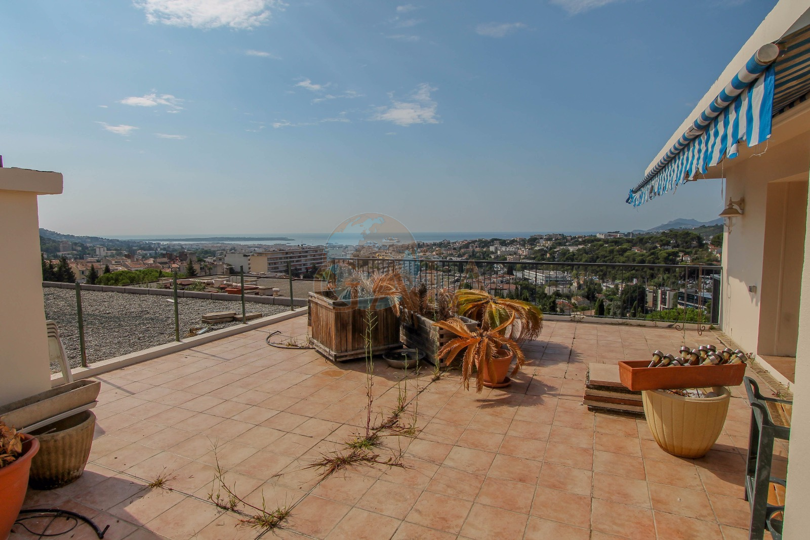 Le Cannet (06110)Le Cannet résidentiel, vaste 4/5P Villa-toit- dernier étage- de 142,52m² avec ascenseur direct- double séjour de 56 m², 3 chambres (possibilité 4), cuisine séparée, 2 SDE, 1 SDB, 2 toilettes séparés, ouvert sur 4 terrasses totalisant plus de 100 m² - vue mer, îles de Lérins et Estérel. garage et parking privé. cave. Copropriété de 42 appartements. charges courantes annuelles 5.534€. procédures NC.